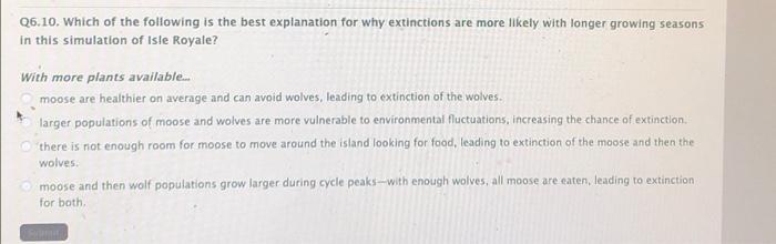 1 Single angle section. Which of the following is the best explanation for why extinctions are more likely with longer growing seasons in this simulation of Isle Royale. Which of the following is the best explanation for why extinctions are more likely with longer growing s Q.